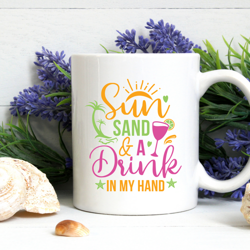 Sun Sand and a Drink in My Hand Printed Coffee Mug